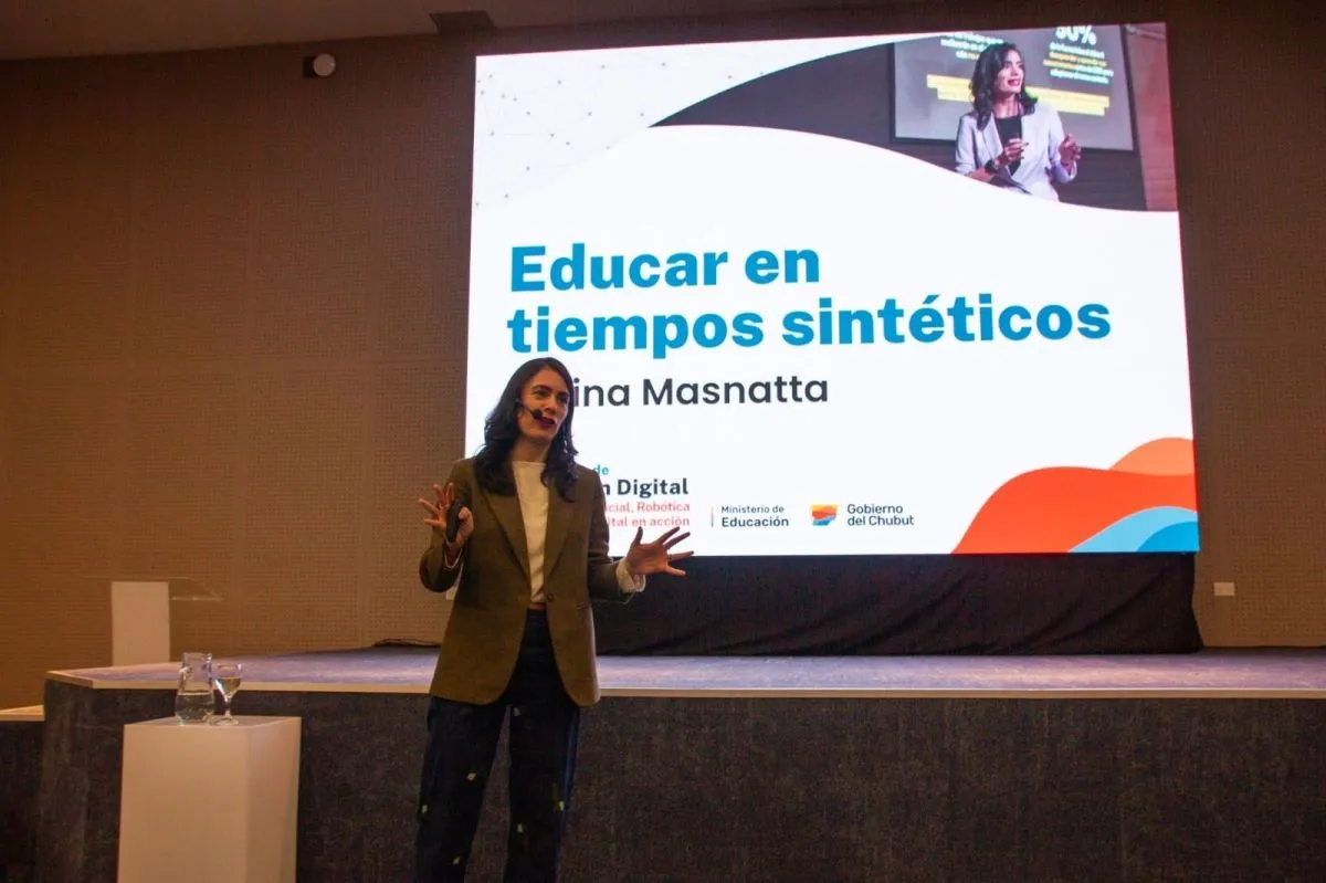 El cierre de la jornada estuvo a cargo de Melina Masnatta con su exposición “Educar en tiempos sintéticos”, que propuso repensar las dinámicas de enseñanza y aprendizaje en un presente atravesado por la inteligencia artificial, subrayando la importancia de construir estrategias pedagógicas inclusivas, sostenibles y orientadas al futuro.