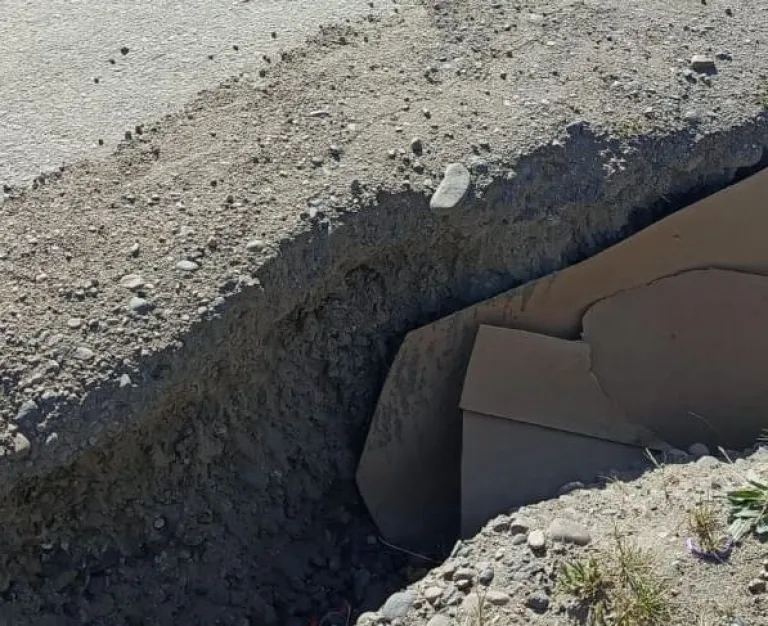 Peligroso socavón en la banquina de la ruta nacional 3