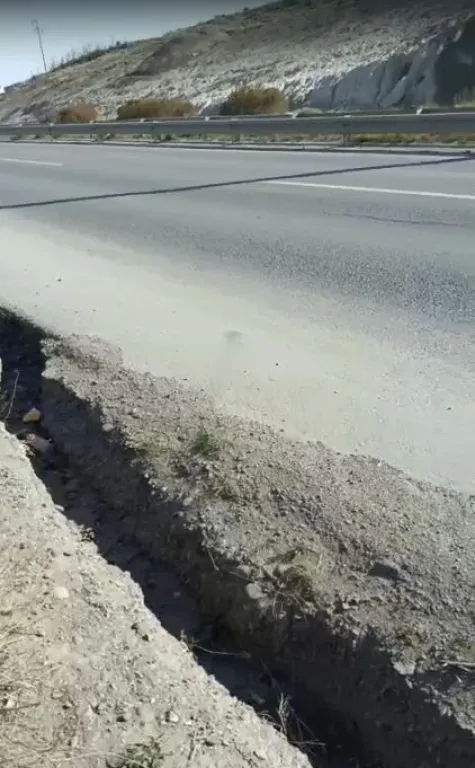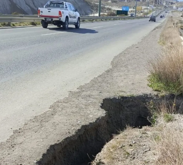 Una peligrosa grieta cada vez que llueve se agranda en la banquina de la ruta nacional 3, entre Palazzo y el ingreso a la planta deshidratadora de Km 9.