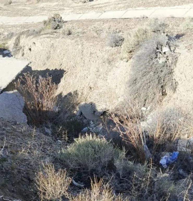 La grieta que se formó lo hizo en un lugar en donde no está el gavión de piedra bocha que se construyó en algún momento para contener el desmoronamiento.