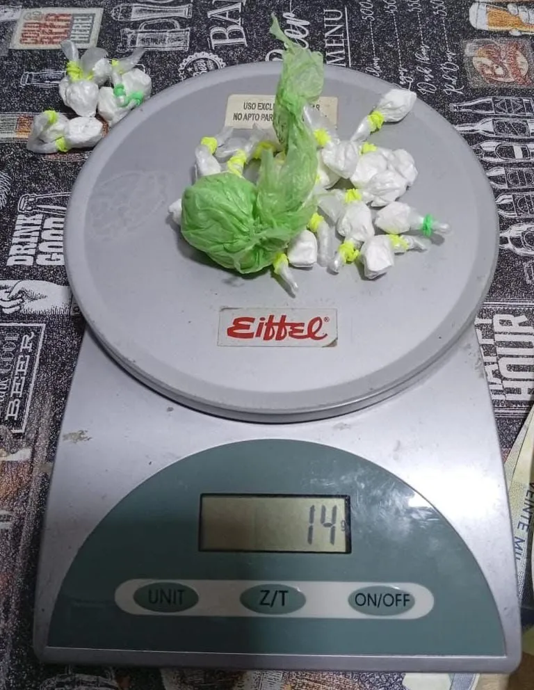 La División de Drogas de Sarmiento, dependiente de la Policía del Chubut, realizó esta madrugada un allanamiento en un domicilio del barrio céntrico de la ciudad, compuesto por varios departamentos. En uno de ellos se procedió al secuestro de 25 gramos de clorhidrato de cocaína fraccionados y listos para su venta, así como también de cannabis sativa y una balanza en funcionamiento.