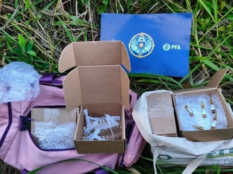 Al efectuar la requisa de los elementos descartados, se verificó que se trataba de un bolso deportivo y una bolsa, los cuales contenían cajas con un total de 200 ampollas de Fentanilo.