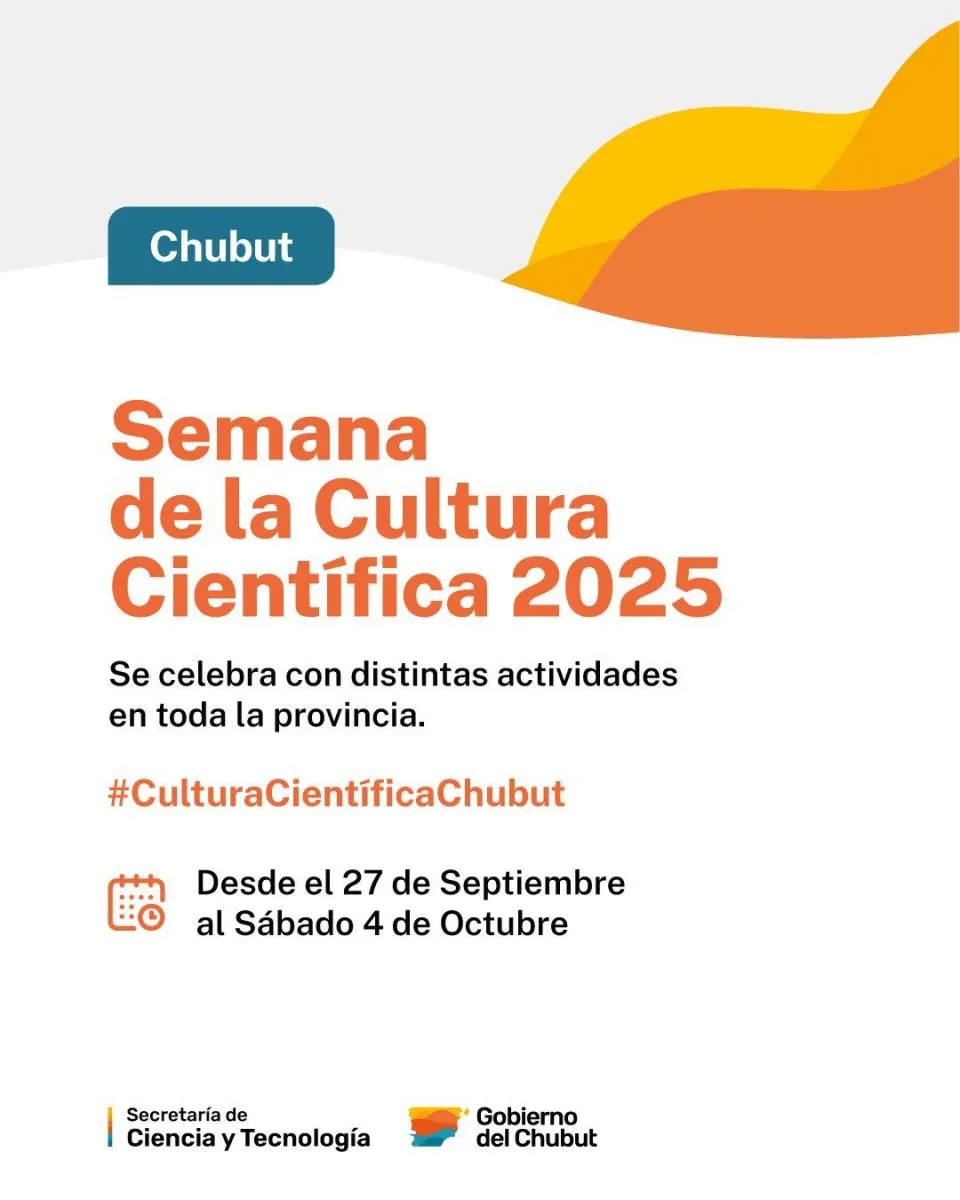 Con el objetivo de visibilizar la importancia de la ciencia en la sociedad y destacar el rol fundamental de los comunicadores y divulgadores en la transmisión del conocimiento, el Gobierno del Chubut, a través de la Secretaría de Ciencia y Tecnología, elaboró un programa que contempla actividades abiertas a todo público del 27 de septiembre al 4 de octubre de 2025.