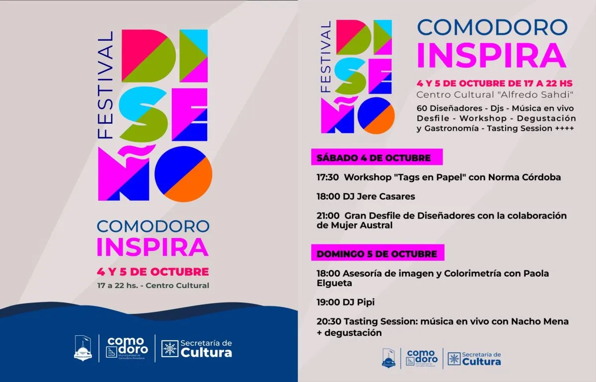 Los días 4 y 5 de octubre de 17 a 22 horas en el Centro Cultural, tendrá lugar el Festival de Diseño: “Cómodoro Inspira”, integrado por las marcas inscriptas en el Registro Oficial de Diseñadores de la Secretaría de Cultura.