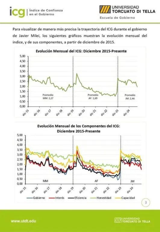 Todos los subíndices del ICG mostraron retrocesos: Honestidad de los funcionarios (2,44, -3,7%), Capacidad para resolver problemas (2,38, -3,1%), Eficiencia en el gasto público (1,87, -11,2%), Evaluación general del gobierno (1,57, -11,5%) y Preocupación por el interés general (1,47, -15,1%).