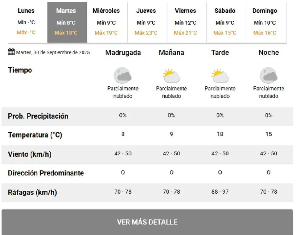 El Servicio Meteorológico Nacional (SMN) ha emitido una advertencia amarilla para este martes 30 de septiembre, alertando sobre vientos fuertes que afectarán a Comodoro Rivadavia y Rada Tilly