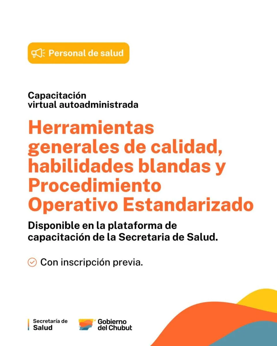 Con el propósito de optimizar los servicios que brinda el sistema sanitario público y jerarquizar el recurso humano, el Gobierno del Chubut, a través de la Secretaría de Salud, abrió las inscripciones para una nueva capacitación sobre “Herramientas generales de Calidad, habilidades blandas y Procedimiento Operativo Estandarizado (POE)”.