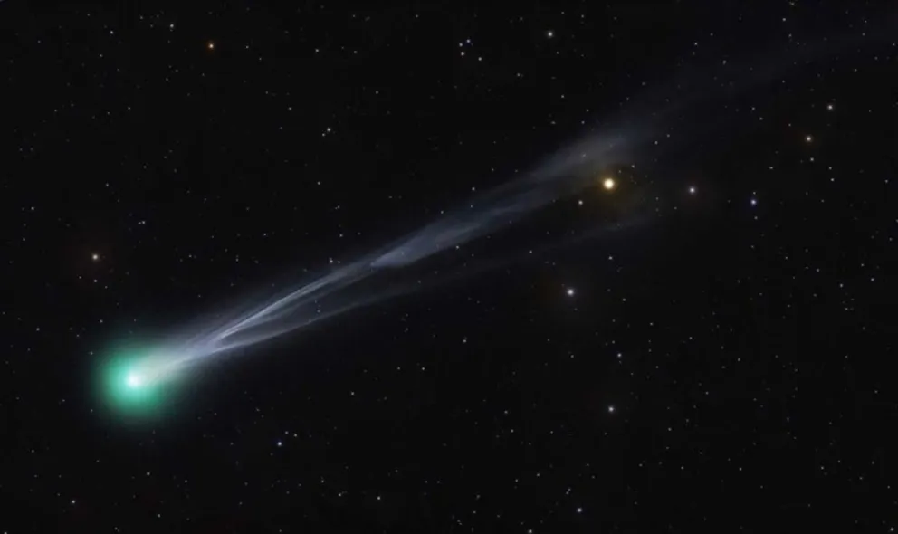 Una reciente fotografía tomada en Texas, EE.UU., muestra la cola iónica del cometa dividida y en rápida transformación, reflejando su actividad dinámica mientras se acerca al Sistema Solar interior.