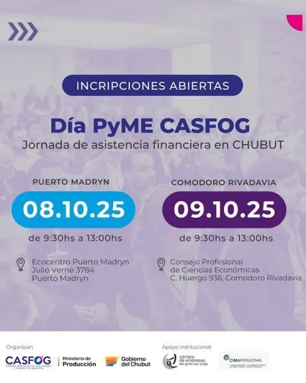 El DiÌa Pyme CASFOG desembarca en Chubut para reunir a pymes, emprendedores y actores del ecosistema financiero en dos encuentros pensados para facilitar el acceso al financiamiento y fomentar nuevas oportunidades de negocios. La cita es este 8 y 9 de octubre.
