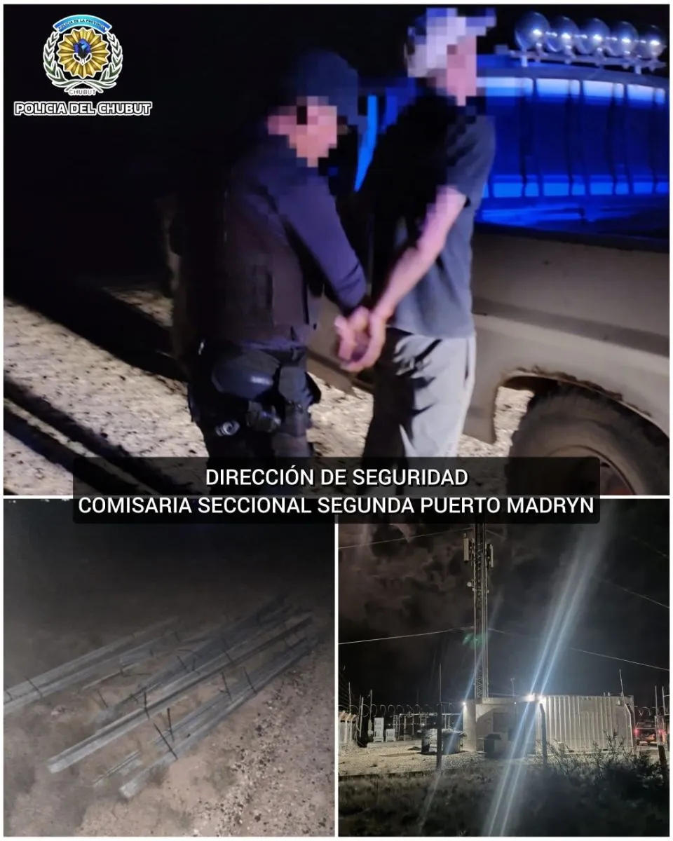 La Policía del Chubut intervino la noche del viernes tras un alerta por un presunto robo en proceso en el predio de una antena de la empresa Claro. Según el reporte policial, cámaras de seguridad registraron a dos hombres ingresando al lugar y dañando el cerco perimetral.