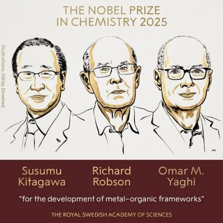 La Real Academia de Ciencias de Suecia otorgó este miércoles el Premio Nobel de Química 2025 a Susumu Kitagawa (Japón), Richard Robson (Reino Unido) y Omar Yaghi (Jordania) por el desarrollo de estructuras metalorgánicas (MOF), una innovadora arquitectura molecular con enorme potencial científico y tecnológico.