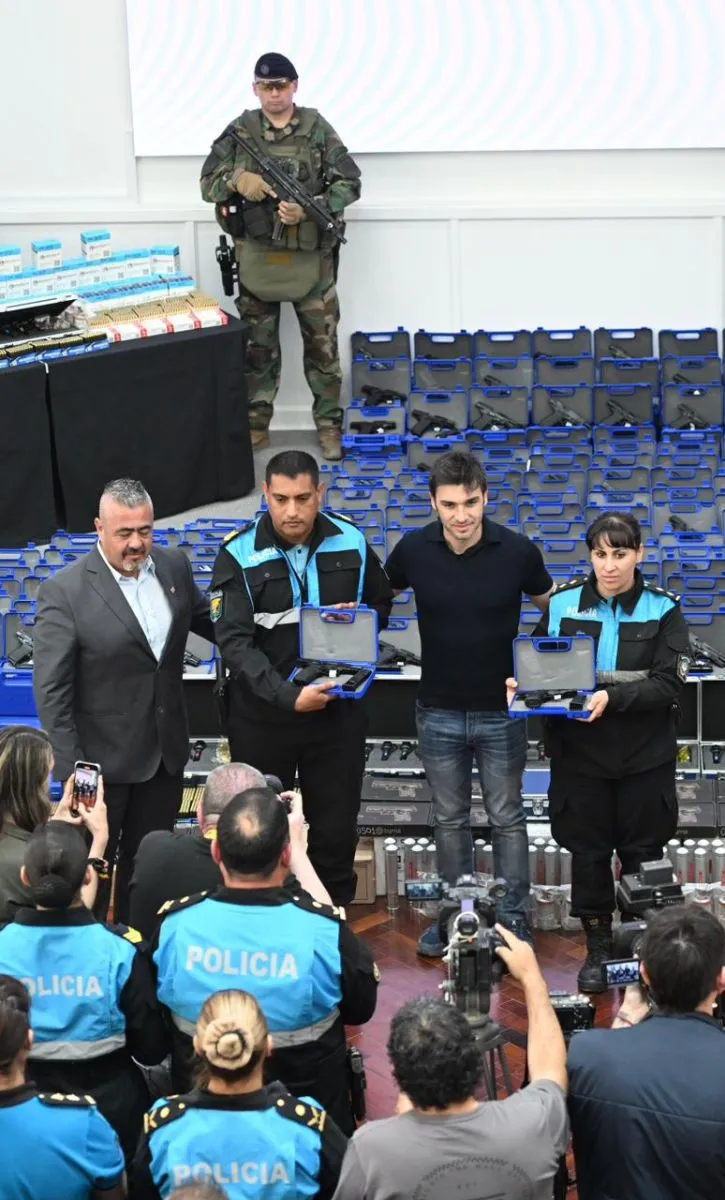 El gobernador del Chubut, Ignacio “Nacho” Torres, encabezó este miércoles la entrega de millonario armamento y municiones a efectivos de la Policía de la provincia, en un acto desarrollado en la Casa de Gobierno en Rawson, y que constituyó una inversión histórica en cuanto a equipamiento para la fuerza provincial. En total se distribuyeron mil pistolas marca Bersa a distintas dependencias chubutenses, así como cartuchos y granadas que fueron adquiridos por el Ejecutivo Provincial por un monto cercano a los 950 millones de pesos.