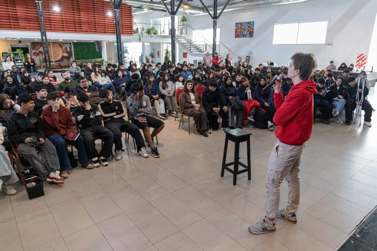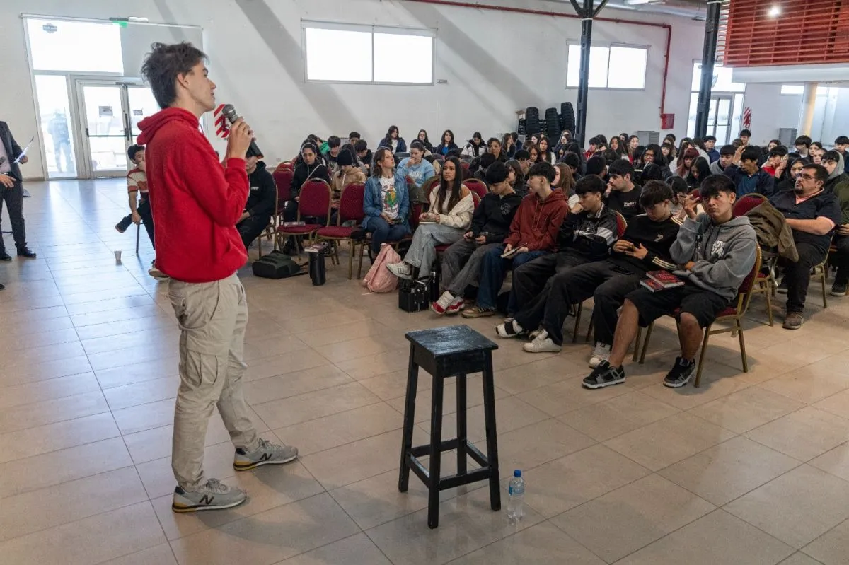 Santiago Speranza, con tan solo 23 años, es uno de los autores más destacados de la literatura juvenil argentina. Ha publicado nueve obras y es conocido por su estilo cercano y auténtico que conecta rápidamente con los adolescentes. Además de su faceta como escritor, es creador del podcast “Te lo dice un despeinado” y fue autor colaborador en la serie de Disney+ “Entrelazados”. Durante el evento, compartió con los estudiantes su obra “Tu amigo invisible”, un libro que fue trabajado en las escuelas participantes.