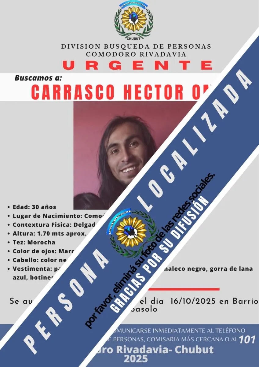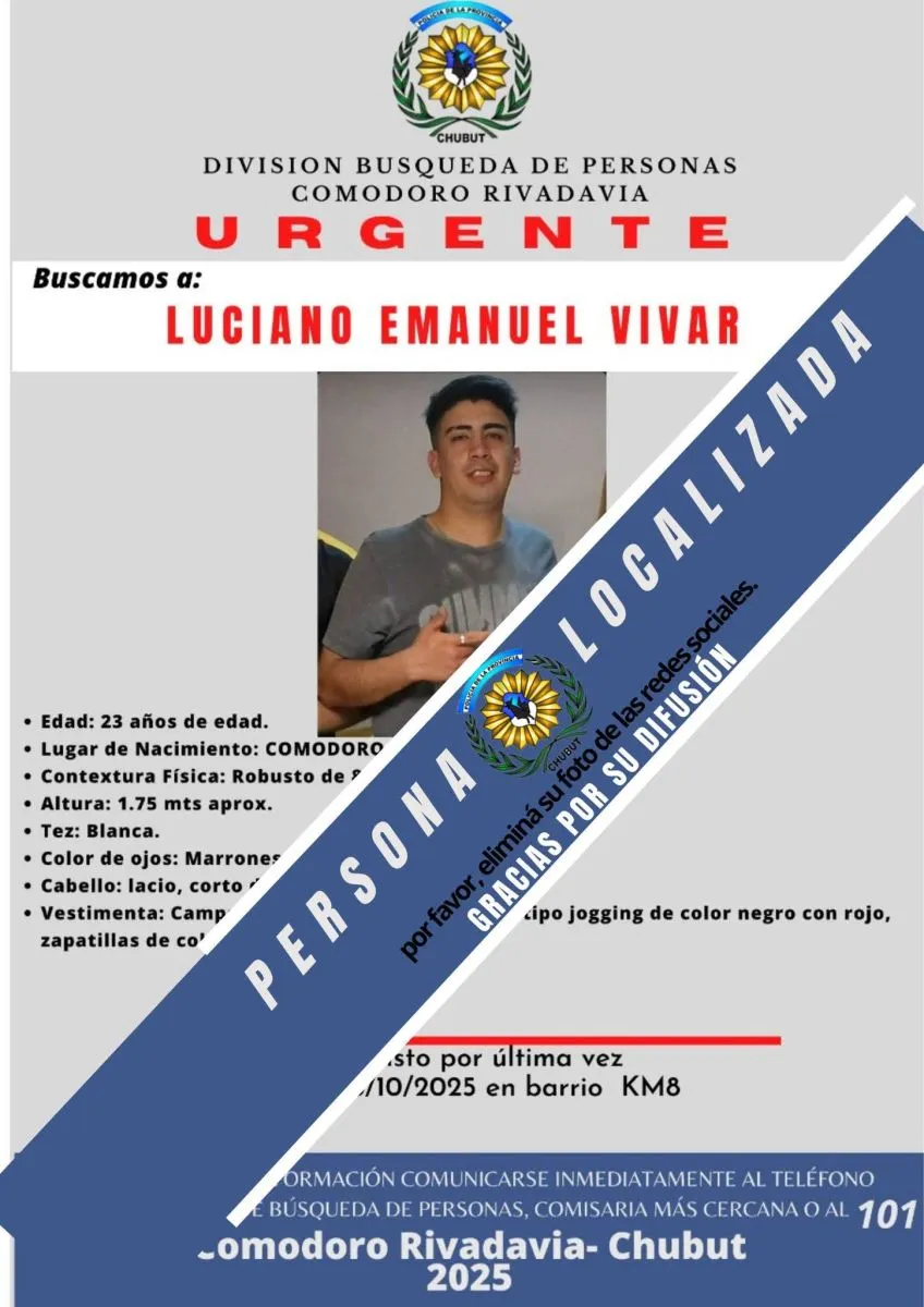 Según informó la División Búsqueda de Personas de Comodoro Rivadavia, localizaron a los dos jóvenes que habían desaparecido hace unos días.