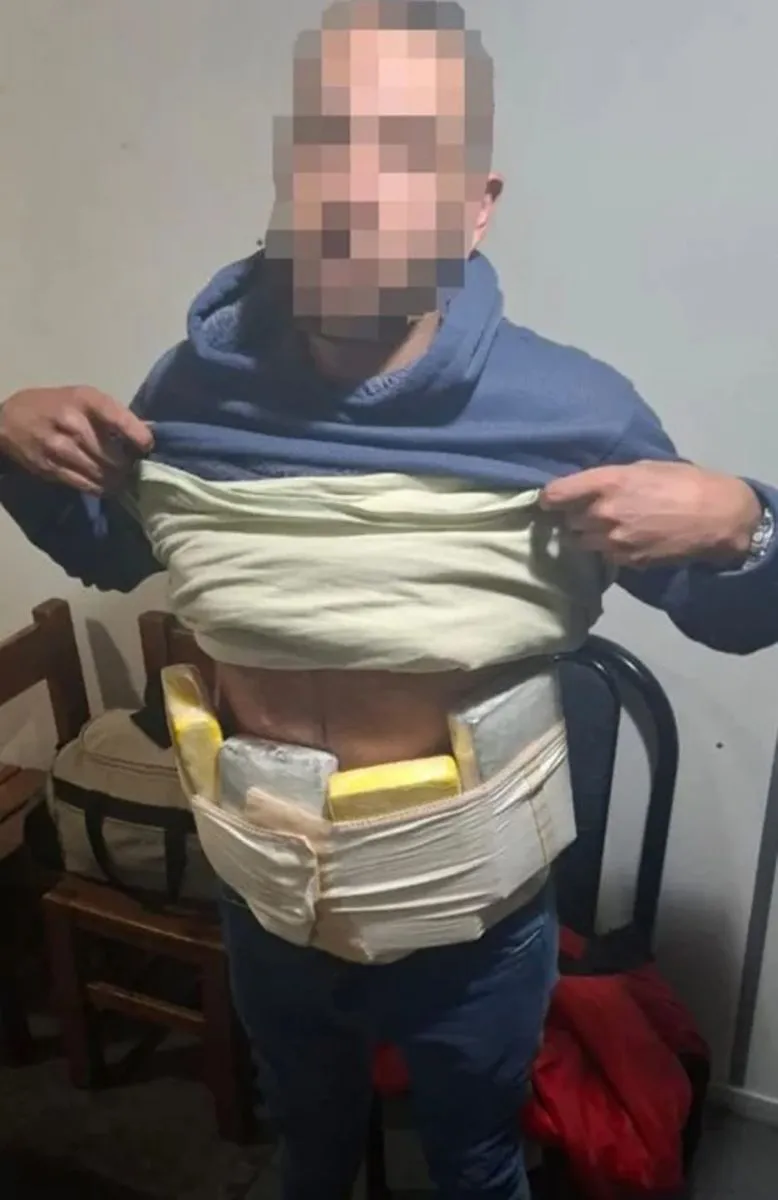 Ante la consulta, el hombre admitió que transportaba estupefacientes y exhibió voluntariamente cuatro paquetes sujetos a su torso con una faja. El narcotest confirmó que se trataba de cocaína con un peso total de 4 kilos 314 gramos.