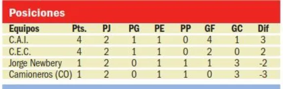 Más comprometido está Jorge Newbery porque después de empatar en la primera fecha ante la C.A.I., perdió en Trelew, frente a Empleados de Comercio.