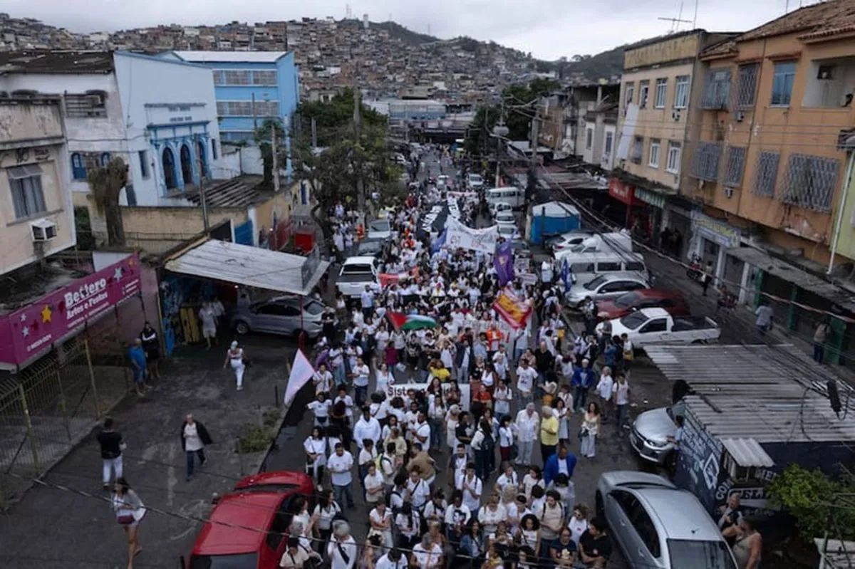 En paralelo a la identificación, se realizaron diversas manifestaciones. En la favela de Penha, uno de los epicentros del megaoperativo, se congregaron decenas de personas con remeras blancas en una cancha de fútbol para pedir paz y el cese de la violencia. Motociclistas y al menos una veintena de combis interrumpieron sus servicios para unirse a la marcha. La protesta, que reunió a una multitud, incluyó consignas pidiendo justicia y reclamando la renuncia del gobernador Claudio Castro, con una bandera que exigía “dejar de matar a los negros”.