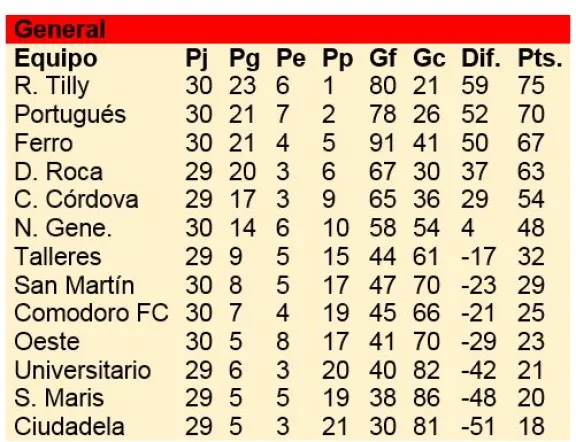 Resultados y posiciones
