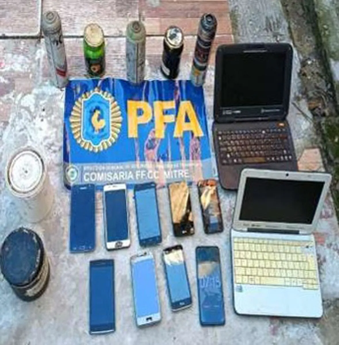 Durante los operativos, se notificó de la causa a los tres investigados. Además, se incautaron más de 100 aerosoles de distintos colores, 64 picos para grafitis, numerosas latas de pintura, pinceles, una balanza de precisión digital, cuatro netbooks, trece teléfonos celulares y documentación de interés para la causa.