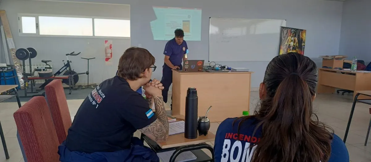 "Estuvimos en la Federación de Neuquén y ahora en Chubut. No solo hay riesgos en las rutas, sino en las instalaciones, en las ferreterias y farmacias. Convivimos con materiales peligrosos y tenemos que estar preparados, no tan solo bomberos sino Policia y emergencias médicas" dijo Azula.