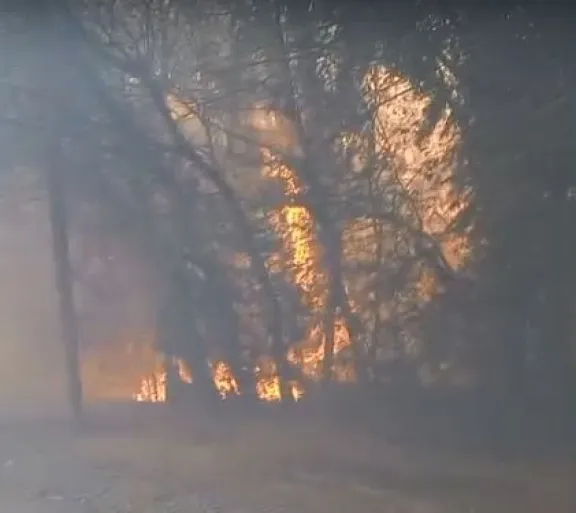Bomberos junto a personal policial trabajan en contener el fuego que incluso destrozó vegetación sobre el costado del camino en el lugar. La zona es evacuada preventivamente.