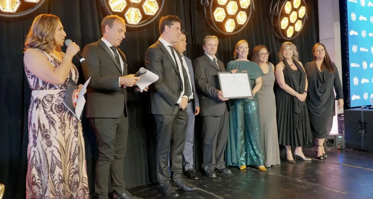 Reconocimiento de la Cámara de Diputados provincial. Los conductores Mariana Gerez y Germán Lagrasta; Diego Garciarena, diputado provincial; Martín Fernando Fruttero, Gerente Comercial; Gabriel Torres, Gerente Técnico; María Eugenia Perales, directora de RRII y Gestión Ejecutiva; Natalia Olmos, directora de Medios de Grupo Crónica; Silvia Garat, Gerenta de Programación; y Mariangeles García.