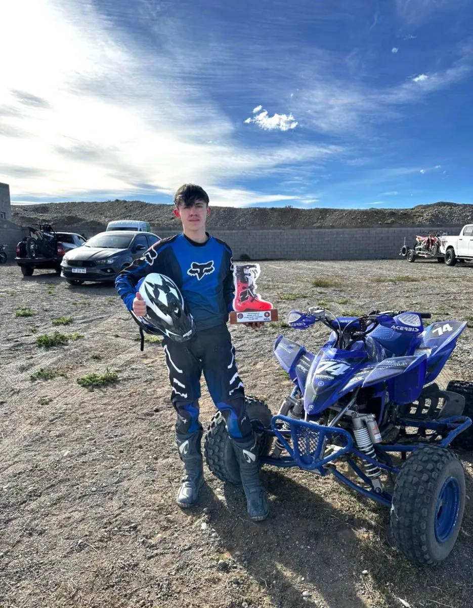 “Mis expectativas para esta carrera eran buenas, tenía muchas ganas de volver a correr. La verdad que salí muy feliz y con un muy buen puesto, que fue podio, segundo puesto en la primera fecha. Representando a Comodoro, con la ayuda también de Comodoro Deportes, aprovecho de mandar un saludo y agradecimiento al profesor Hernán Martínez y también a su equipo de trabajo”, expresa Santino Villalobos piloto que corre en la categoría QX2 450cc, acotando que el ganador el pasado domingo 23 de noviembre fue Franco Ruiz y Valentina Campagnoni terminó en tercer lugar, ambos competidores son de Río Gallegos.