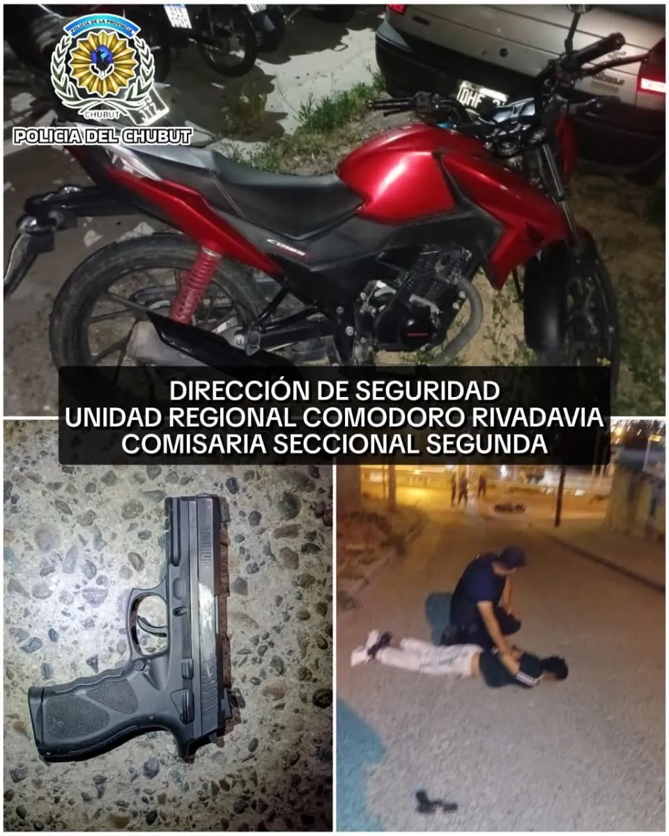 Producto del operativo, se procedió al secuestro de la pistola marca Taurus, un proyectil calibre 9 mm, un proyectil calibre 9 mm percutado hallado en la recámara del arma, y la motocicleta marca Honda de color rojo utilizada por el aprehendido.