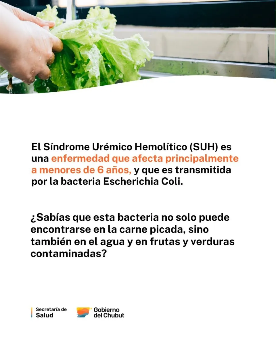 El Gobierno del Chubut, que conduce Ignacio Torres, reforzó a través de la Secretaría de Salud las acciones de prevención en todo el territorio provincial, debido a la aparición de tres casos de Síndrome Urémico Hemolítico (SUH).