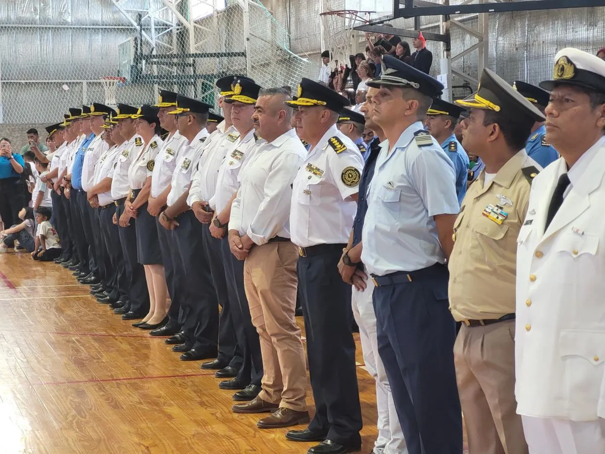 El acto estuvo encabezado por el ministro de Seguridad, Héctor Iturrioz, junto al Jefe de la Policía del Chubut, Andrés García, y la plana mayor de la Jefatura. Además del Jefe de Unidad Regional, comisario mayor Lucas Cocha y jefatura local, autoridades del municipio, autoridades de distintas fuerzas, y familiares de los egresados, entre otros.