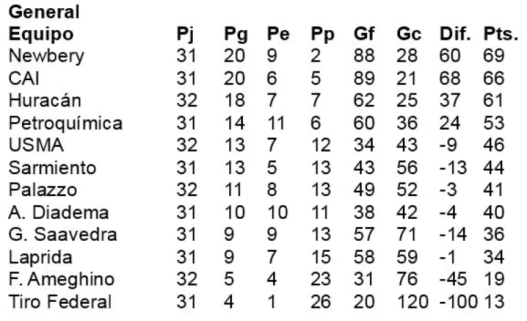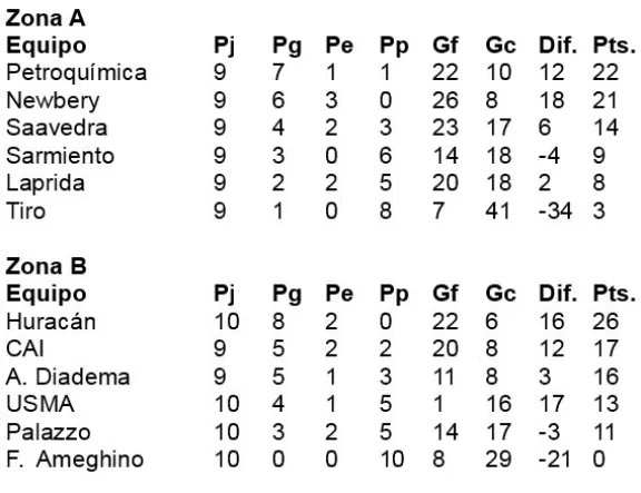 Resultados y posiciones de A