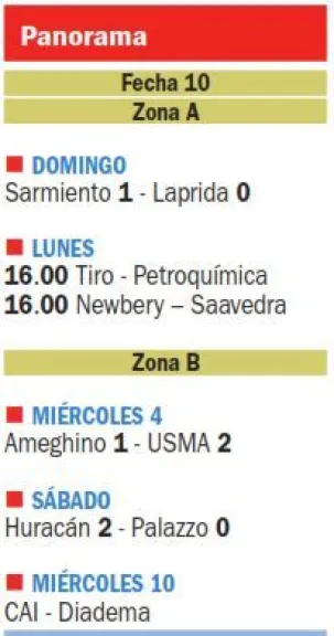 La última jornada del campeonato se está desarrollando en diferentes días y este lunes Sarmiento derrotó uno a cero a Laprida, mientras que el miércoles 10 se jugará el cruce entre CAI y Argentinos Diadema.