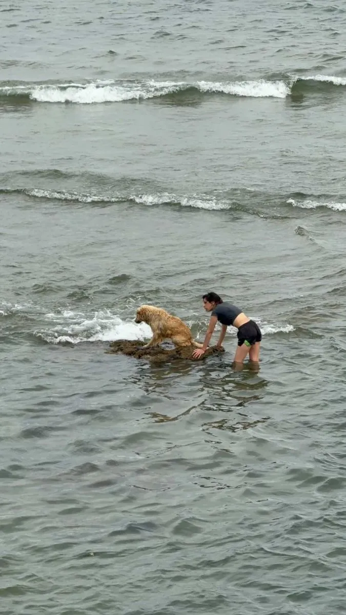 Una pareja de jóvenes cruzó la ciudad para salvar a un perro atrapado por la marea en la Ducos