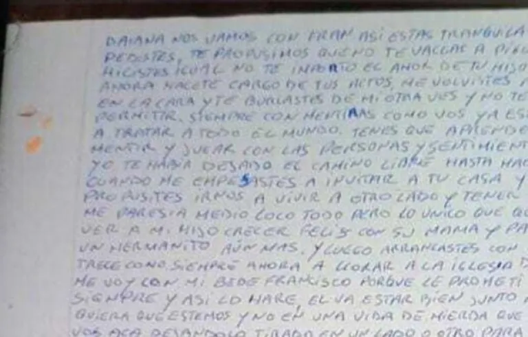 La carta escrita por Suárez apuntó directamente contra la madre del niño. Allí la responsabilizó por la tragedia y describió su intención de “irse con su hijo”. En el texto, cargado de manipulación y amenazas, afirmó que ella debía “hacerse cargo” de lo que iba a pasar.