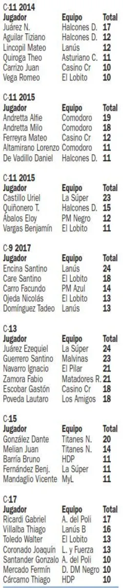 Lanús Infantil A 8: Bastián Miranda 2, Ian Barria 2, Dante Latorre 4.