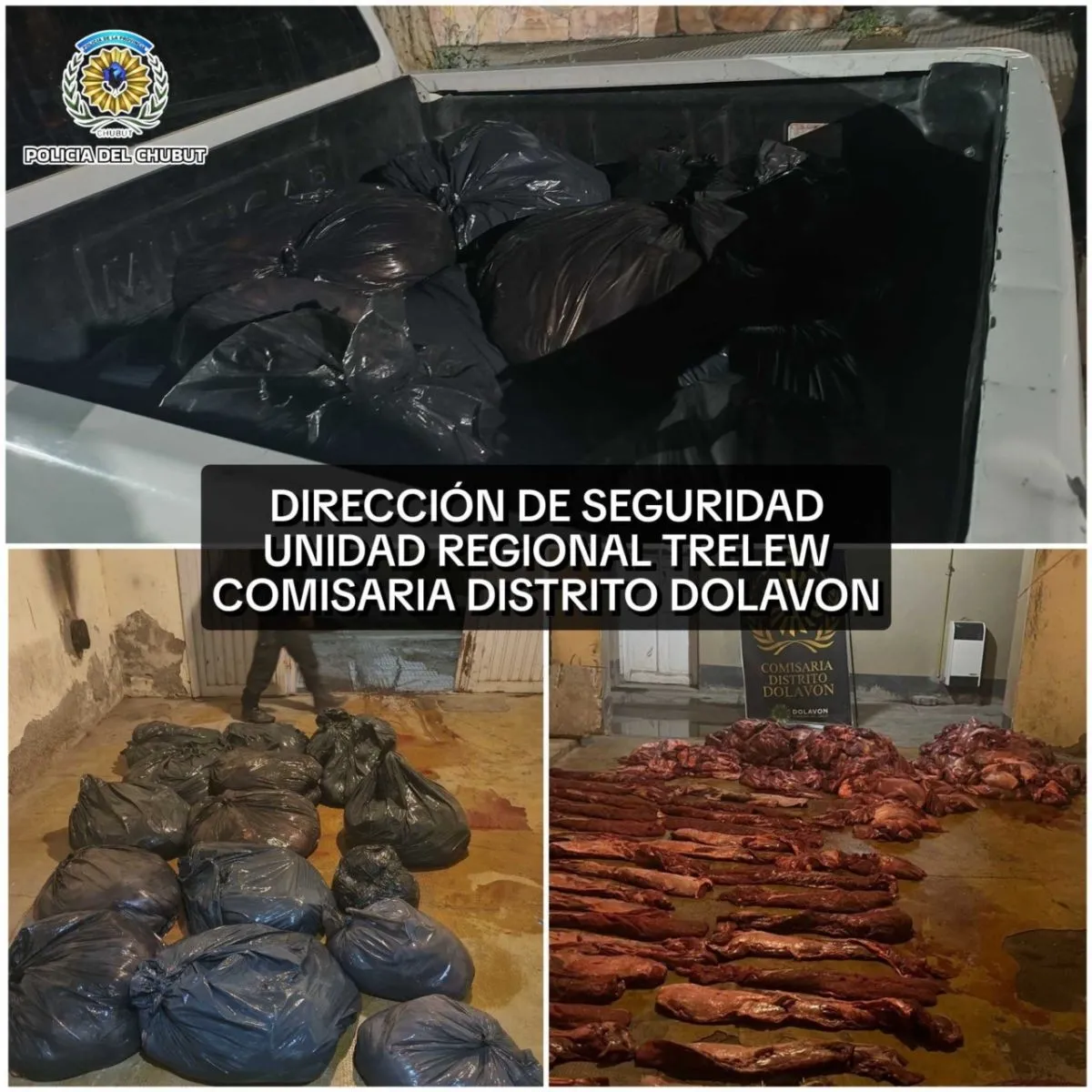 Un control vehicular de la Comisaría de Dolavon terminó este miércoles a la madrugada con el secuestro de una gran cantidad de carne de guanaco y la detención de un hombre buscado por la Justicia.