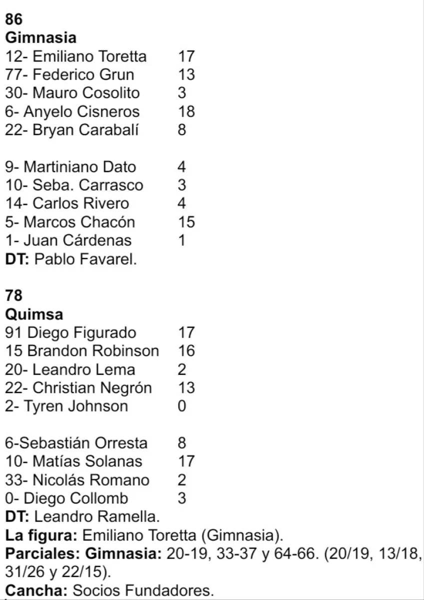 En el segundo cuarto llegó el pasaje más complejo para Gimnasia. La falta de efectividad perimetral y los varios lanzamientos fallados cerca del aro fueron bien aprovechados por Quimsa, que logró una pequeña escapada y pasó al frente. Sin embargo, el equipo local no se desordenó y volvió a equilibrar el marcador con buenas ejecuciones colectivas, generando situaciones claras tanto en la pintura como desde el perímetro, aunque sin la puntería deseada.