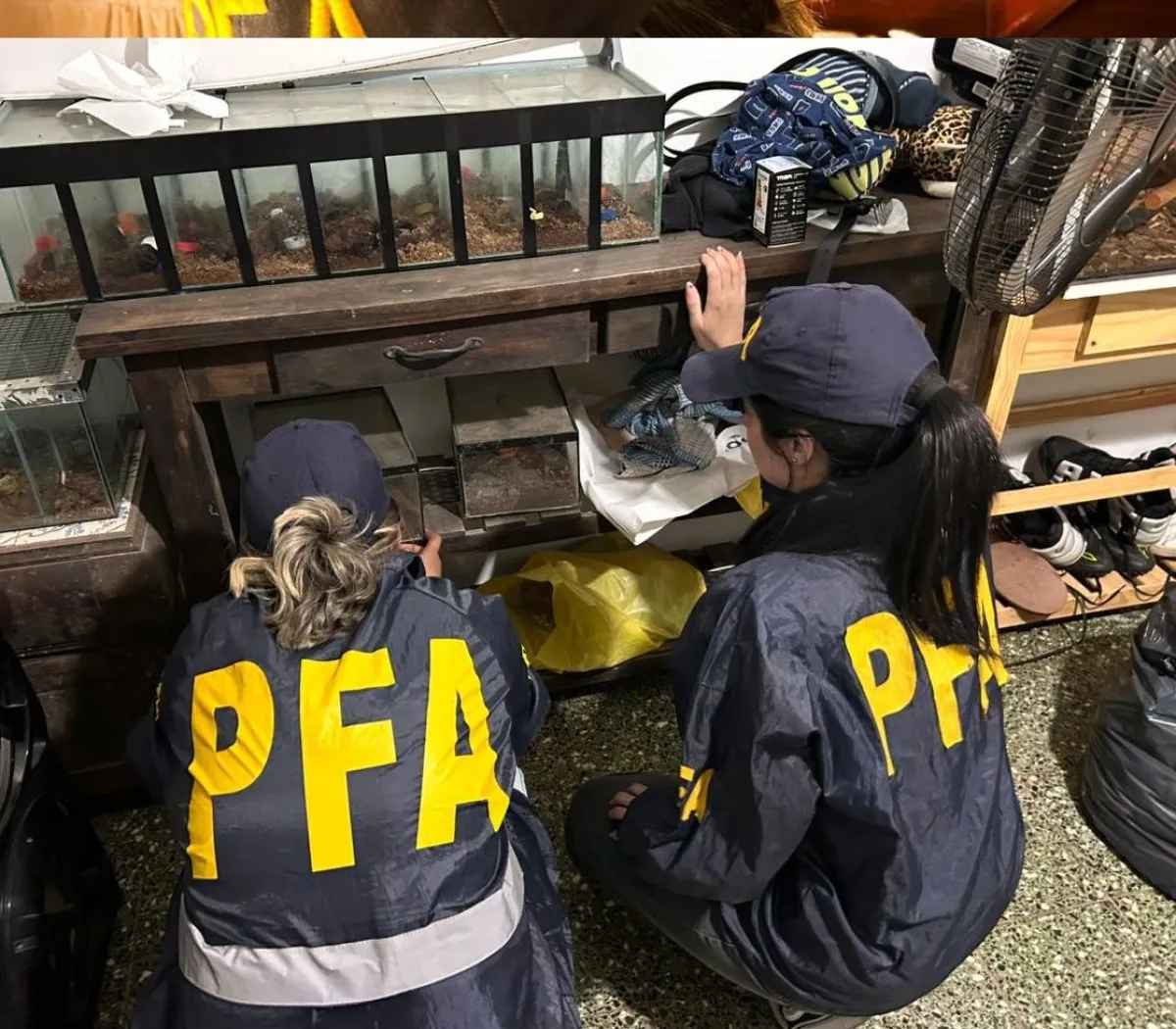 Durante el operativo, que contó con la colaboración de técnicos de la Brigada de Control Ambiental (BCA) de la Subsecretaría de Ambiente de la Nación, se hallaron diversas especies de fauna silvestre mantenidas en condiciones irregulares, sin cumplir los protocolos de bienestar animal ni contar con la documentación que acreditara su legítima procedencia y trazabilidad.