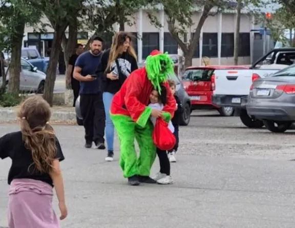 Los bomberos del Destacamento 3 junto a Papá Noel y el Grinch recorrieron desde Saavedra hasta Castelli entregando caramelos.