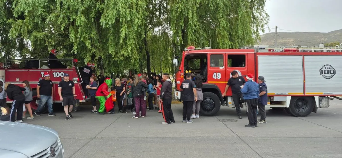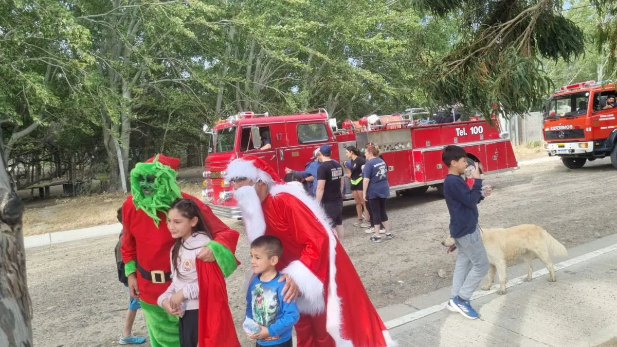 Bomberos del Destacamento 3 junto a Papá Noel y el Grinch repartieron golosinas