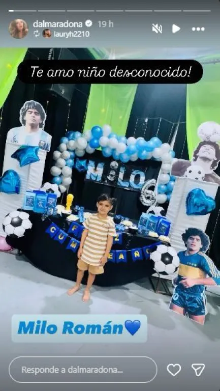 Dalma Maradona, reposteó la publicación de Milo Román Escobar, un niño de 6 años que eligió festejar su cumpleaños con la temática de D10s.