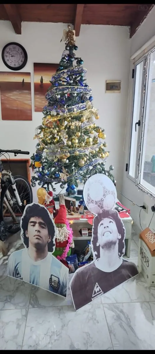 La familia Escobar es muy maradoniana, en su árbol de Navidad en la casa de Caleta Córdova, tiene la figura del Diego al pie del árbolito.