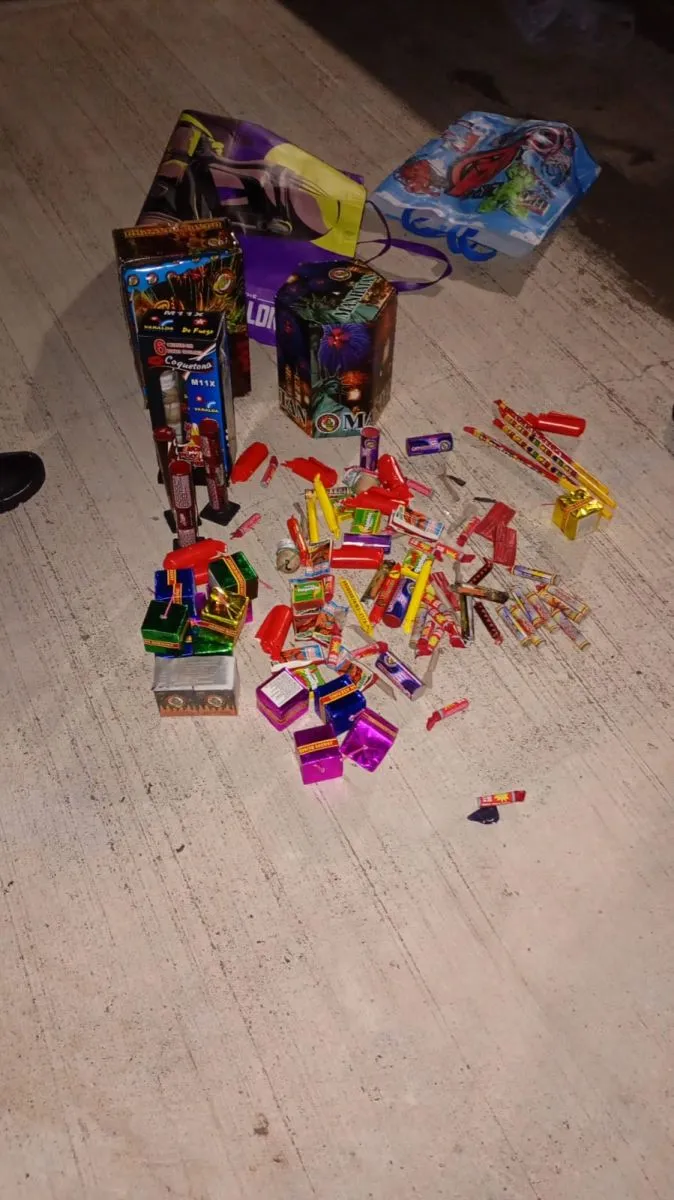 Al llegar a la zona, constataron que en un sector había gran cantidad de petardos, bengalas, volcanes y demás pirotecnia no permitida en dos bolsas de compra, pero al consultar a los adolescentes que estaban cerca si eran de su propiedad los artificios, ninguno se hizo responsable y dijeron ser menores de edad.