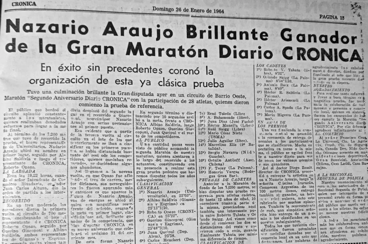 En más de seis décadas de historia, la Corrida Internacional del Diario Crónica tuvo grandes nombres que dejaron su huella, pero ninguno logró igualar el dominio de Nazario Araujo.