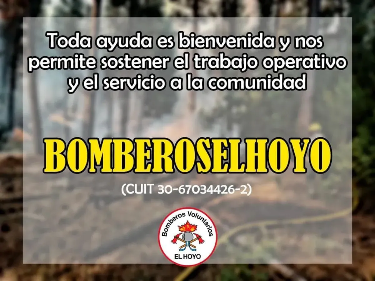"Quienes deseen colaborar con la institución pueden hacerlo a través del alias: bomberoselhoyo (CUIT 30-67034426-2). Gracias por el respeto, la solidaridad y el apoyo constante", informaron de manera oficial. El número telefónico de Bomberos El Hoyo es: 02944471515.