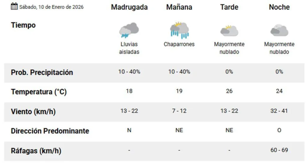 Pronóstico para este sábado 10 de enero