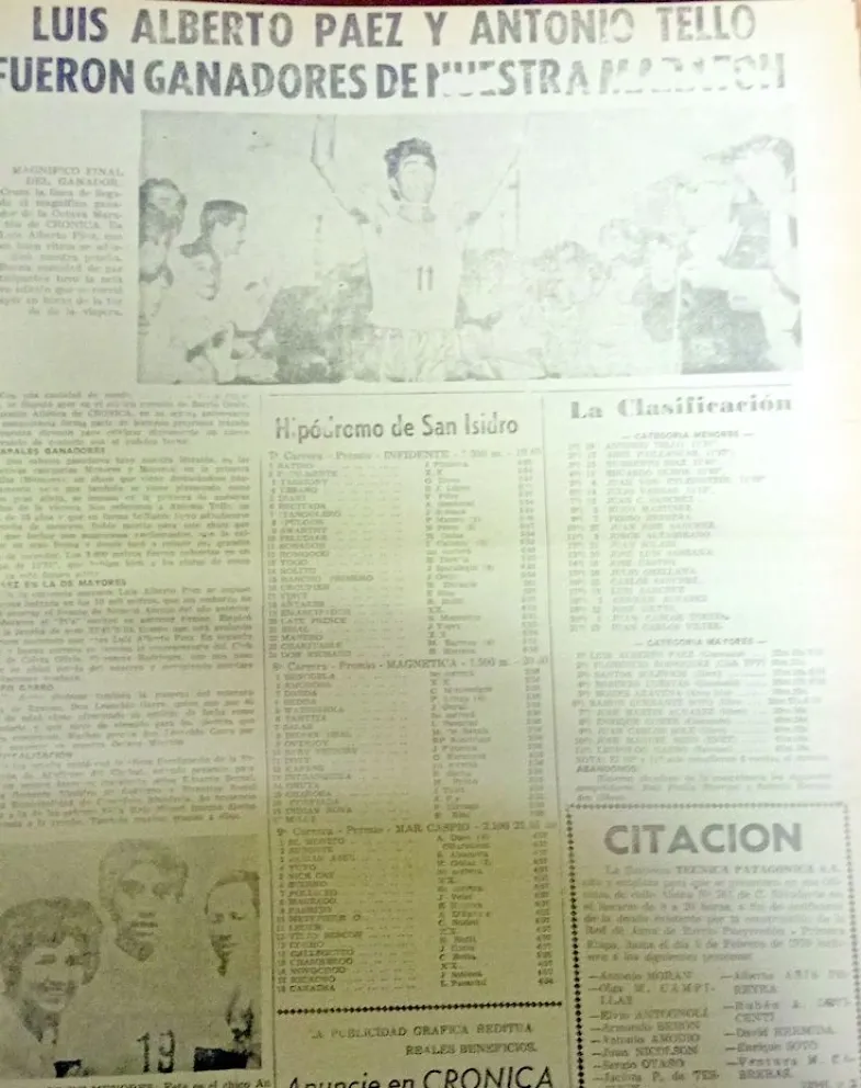 En 1974, el “Pila” Páez volvió a festejar el primer lugar en otra gran definición, pero una de las noticias salientes fue la destacada actuación de Myrian Mabel Acosta, quien se animó a competir con los varones en la categoría infantiles y terminó quedándose con el triunfo, marcando un hito en la historia de la prueba.