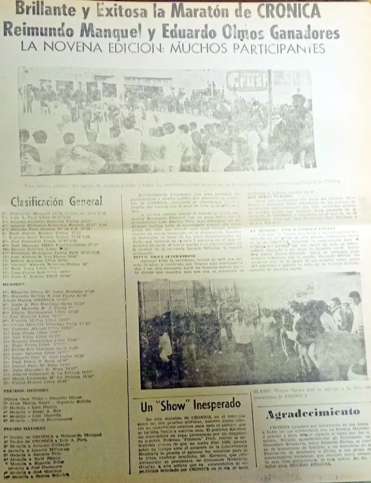 En 1972, durante la décima edición, llegó el esperado despegue de Antonio Tello, quien se subió a lo más alto del podio mayor. Fue una carrera marcada por el fuerte viento, en la que Tello, alumno de Páez, logró superarlo en los metros finales por apenas tres segundos. Aquella definición inspiró el recordado título de Crónica: “Perdón, maestro”, reflejando el respeto y la emoción del momento.