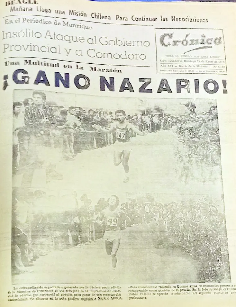 Así, año tras año, la Corrida de Crónica fue construyendo una historia rica en emociones, grandes atletas y definiciones inolvidables, con Nazario Araujo como uno de sus máximos símbolos, un nombre que se repite y que permanece grabado para siempre en la memoria del atletismo patagónico.