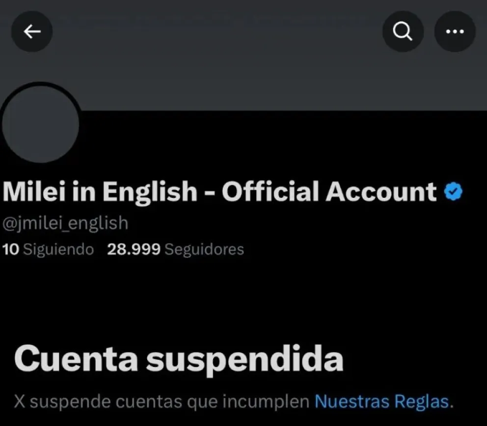 Apenas cinco horas después de haber anunciado su creación, la nueva cuenta oficial en inglés del presidente de la Nación, Javier Milei, fue suspendida por la red social X. Al intentar acceder al perfil @jmilei_english, los usuarios se encuentran con un mensaje que indica: “Cuenta Suspendida. X suspende cuentas que incumplen nuestras reglas”.